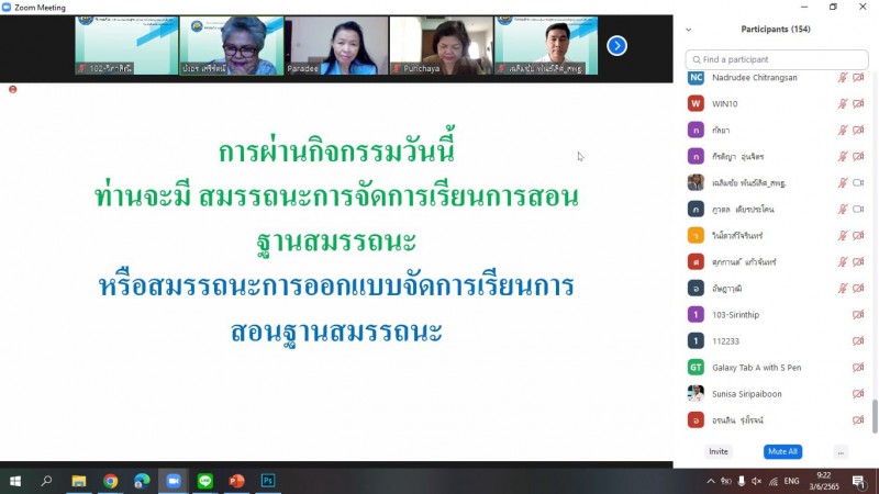 วันที่ 3 มิถุนายน 2565 คณะผู้บริหาร ครู โรงเรียนเทศบาลอินทปัญญา วัดใหญ่อินทาราม เข้าร่วมอบรมโครงการพัฒนาครูและบุคลากรทางการศึกษา (กิจกรรมที่ 2) การฝึกอบรมสัมมนาเชิงปฏิบัติการนำร่องการนำหลักสูตรฐานสมรรถนะสู่ห้องเรียน ผ่านโปรแกรม zoom meeting